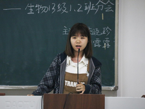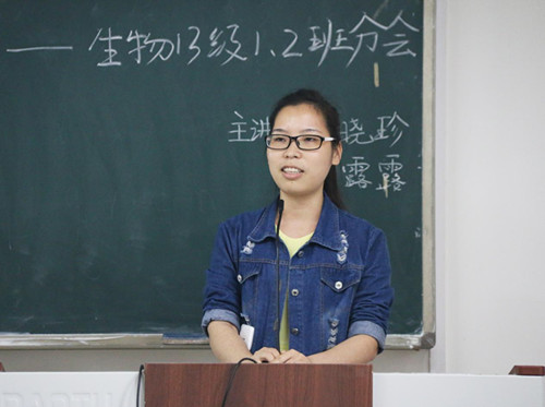在06310教室召开第四场“传、帮、带”经验交流会。本次考研就业经验交流会由13级辅导员陈文甫主持,此次到场的分享者是考取了广西师范大学研究生朱晓珍学姐和被西南大学微生物专业录取的刘露露学姐,2013生物工程专业全体同学参与了分享会。