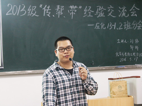 应用化学专业的同学,由2013级辅导员陈文甫老师主持。本场分享者是成功保送到中南大学分析化学专业攻读硕士研究生的邹娇学姐和考取厦门大学海洋化学专业的刘伟学长。