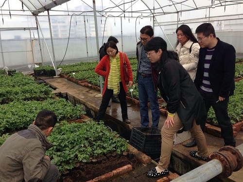 教研室老师参观该公司的百香果种苗培育大棚