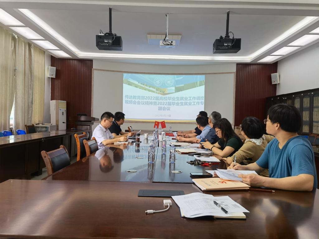 在雁山校区12217会议室召开传达教育部2022届高校毕业生就业工作调度视频会会议精神暨2022届毕业生就业工作专题会议。学院全体党政领导班子出席本次会议,会议由学院院长匡小军主持。