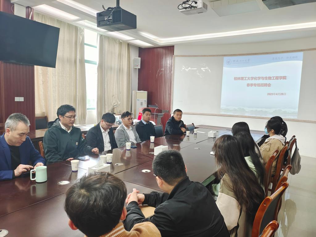 于萃华楼12220举行春季校园双选会,桂林奇刚科技发展有限公司、广西美源生物科技有限公司、广西玻源新材料有限公司等单位应邀参加本次双选会,学院党委副书记李少华、副院长何方、就业辅导员朱皓及50余名学生参加双选会。