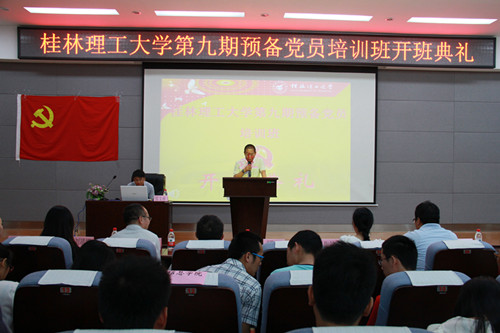 、地球科学学院、信息科学与工程学院、测绘地理信息学院、艺术学院春季学期联合党校预备党员培训班在雁山逸夫楼报告厅举行开班仪式。工口漫画