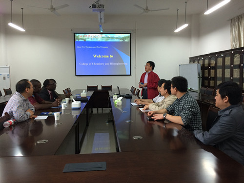 院长李建平、副院长张淑华、杨建文等在雁山校区12217会议室接待了来访客人。