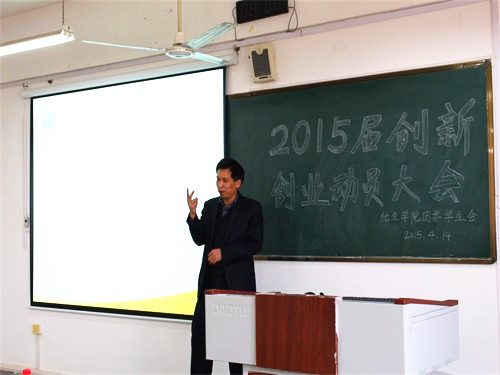 动员会上,杨建辉老师发表了简要的讲话,他希望同学们能认真对待此次比赛,并且以最大的热情展现化生学子的风采。随后,张淑华副院长对本次比赛的流程和奖励机制等各个方面进行了详细的介绍,并认真的分析了创新创业大赛对学生的深远影响,鼓励同学们积极主动投入到本次大赛中。最后, 2014级研究生代表陈鹏同学分享了他往年参加比赛的经验,并且给现场的同学提出了很多具有建设性意义的建议,让同学们对此次创新创业大赛充满了期待。