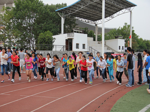 决定自本学期始在大一大二学生中组织开展“体质最强班”系列活动,并于2014年10月28日下午16:30在雁山足球场全面启动,并进行了首次“谁是大英雄”班级团体长跑大赛。学院党委副书记陶剑飞、团委副书记饶筠筠、各年级辅导员, 2013、2014级全体学生参加了此次活动。