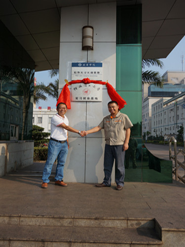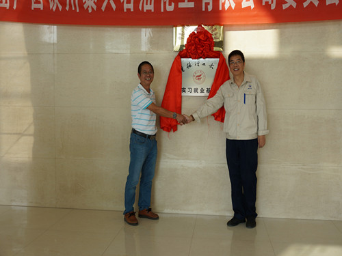 广西钦州泰兴石油化工有限公司实习就业基地揭牌仪式(左为学院代表梁军书记,右为公司代表吉元来副总经理)