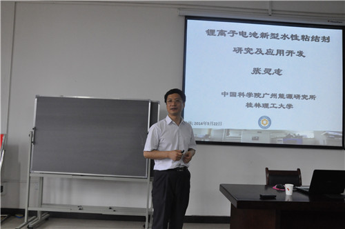 特聘专家张灵志教授应邀在雁山校区12209会议室为学院师生做了题为“锂离子电池新型水性念结剂研究和应用开发”的研究成果报告会,学院副院长杨建文教授、电化学教研室各相关老师以及研究生参加了此次报告会。