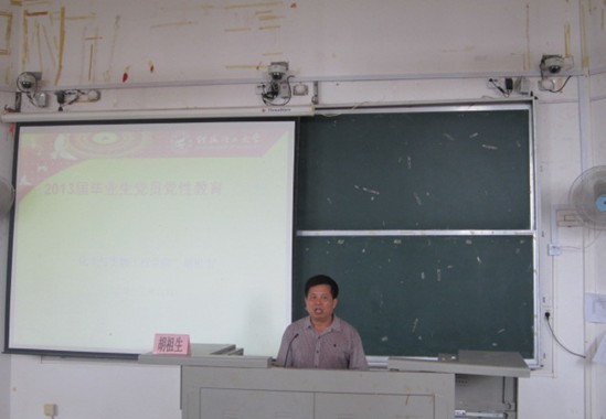 胡祖生书记首先代表学院党委向毕业生们表示最热烈的祝贺和衷心的祝福。祝贺他们顺利毕业、前程似锦!课上,胡书记和毕业生党员重温了一次党章,同时胡书记对毕业生党员提出了三点要求,一是树立正确世界观,坚定崇高理想信念;二是树立正确权力观,为人民掌好权用好权;三是树立正确事业观,殚精竭虑干好工作。党课的最后,胡书记对所有毕业生党员寄予希望,希望同学们在工作岗位上,时刻牢记共产党员的使命,为改革开放和社会主义现代化事业建功立业。