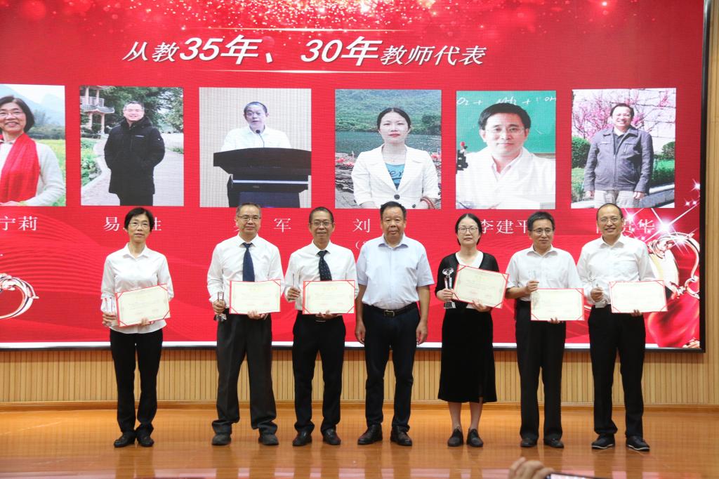 的发展历程和取得的成绩,指明了学院未来的发展方向和重点工作,并代表学校向全院教师致以节日的祝福。随后,学院院长匡小军宣读了《关于学院表彰“从教三十五年、三十年、二十年、十五年及十年”的决定》,并进行了表彰活动。