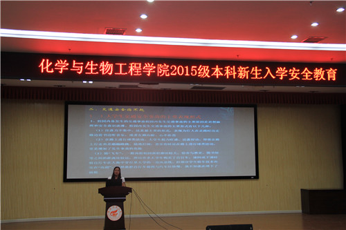 于9月13日晚在雁山校区图书馆报告厅召开了2015级新生安全教育大会,学院党委副书记陶剑飞、2015级新生辅导员李冲老师和学长学姐制代表陈鼎元共同参加了本次大会。