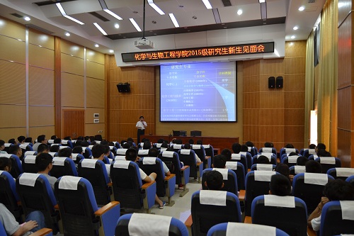 在雁山校区矿冶中心学术报告厅召开2015级硕士研究生新生见面会。学院党委书记梁军、院长李建平,副院长张淑华、潘宏程、刘勇平,硕士生导师、研究生辅导员以及2015级新生参加了会议。会议由张淑华副院长主持。