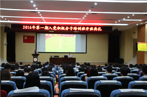 开班典礼在庄严的国歌声中拉开了帷幕。首先由外国语学院分党校副校长江玲老师作开班致辞。她说到入党积极分子培训班是对要求进步的青年进行共产主义理想教育,培养和造就一批既有真才实学,又具有坚定共产主义信念的社会主义事业的合格建设者和可靠接班人的重要途径,她希望各位学员端正入党动机,与“两学一做”看齐,立足更高的起点,勤奋学习,刻苦钻研,争做一名“有理想,有道德,有文化,有纪律”的“四有”新人。