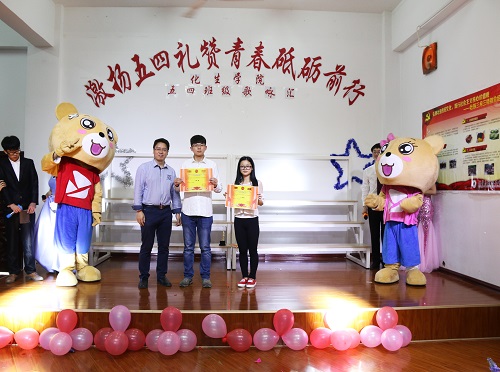 本次歌咏汇,生物工程2014-2班演唱的《马克思是个90后》,以现代的多元素创演,独特的领唱、成功俘获评委观众的心,夺取桂冠。化工14卓越班指挥潘帅池以精准的打点,有力、标准的指挥,获得“最佳指挥员”荣誉称号。