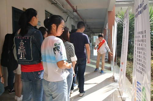 2016级新生在班助的带领下按班级顺序分批前往萃华楼,参观学院大学生创新创业成果展、专业实验室以及工口漫画
