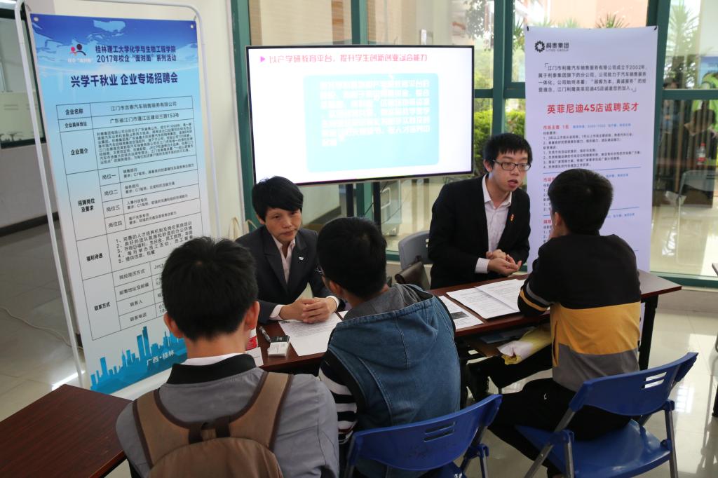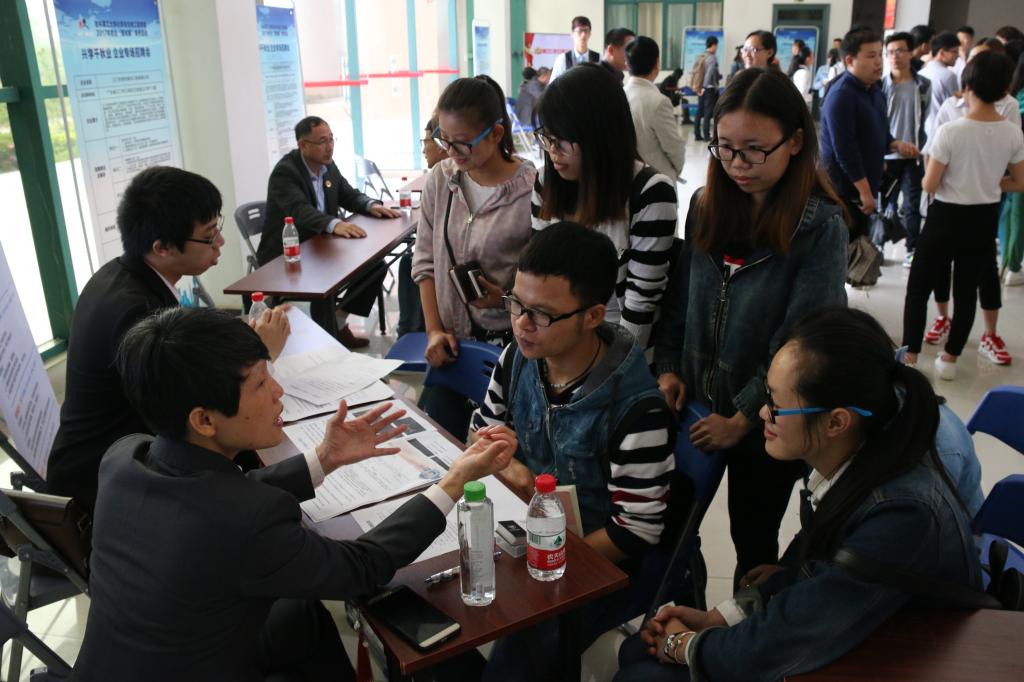2017年校企“面对面”系列活动之兴学千秋业,企业专场招聘会在雁山校区萃华楼一楼大厅举行。