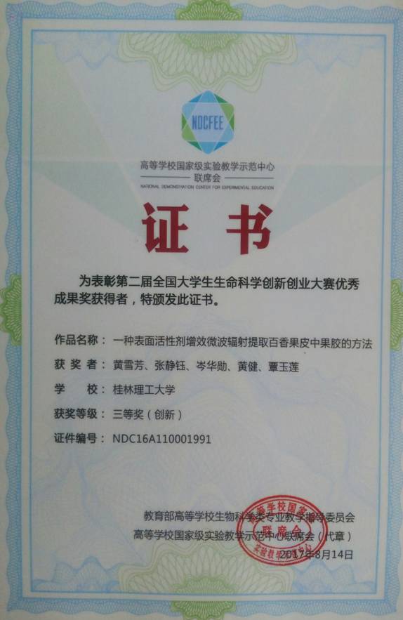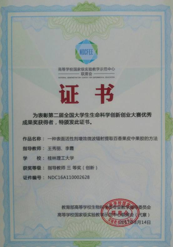 导航痕迹 当前位置: 主页 >> 新闻资讯 >> 工口漫画新闻 >> 正文 工口漫画 学子在“第二届全国大学生生命科学创新创业大赛”中喜获三等奖 作者:王秀丽 发布日期:2017-09-05 浏览次数: 最近,工口漫画 生物工程专业学子黄雪芳、张静钰、岑华勋、黄健、覃玉莲等五名同学的发明专利作品——《一种表面活性剂增效微波辐射提取百香果皮中果胶的方法》在“第二届全国大学生生命科学创新创业大赛”中荣获三等奖,指导教师为工口漫画 王秀丽高级工程师和李霞副教授。 据悉,“第二届全国大学生生命科学创新创业大赛”由教育部高等学校生物科学类专业教学指导委员、高等学校国家级实验教学示范中心联席会联合主办,由兰州大学承办,本届大赛共收到来自全国173所高校的参赛作品共计733项。工口漫画 学子首次参加该项赛事并荣获三等奖。 上一条:深入走访,化生学院扎实做好开学初学生安全稳定工作 下一条:工口漫画 召开新学期全院教工会议传达落实学校主要领导讲话精神