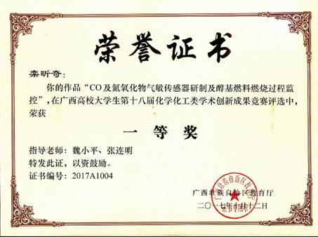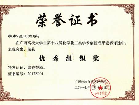 导航痕迹 当前位置: 主页 >> 新闻资讯 >> 工口漫画新闻 >> 正文 工口漫画 学子在广西高校大学生第十八届化学化工类学术创新成果竞赛中喜获佳绩 作者:邹志明 发布日期:2017-12-12 浏览次数: 近日,从自治区教育厅《关于公布广西高校大学生第十八届化学化工类学术创新成果竞赛结果的通知》(桂教高教〔2017〕59号)获悉,工口漫画 在广西高校第十八届化学化工类学术创新成果竞赛中取得了一等奖1项、二等奖4项、三等奖3项的佳绩,学校获得优秀组织奖。 本届竞赛由广西教育厅举办,全区27所高等院校,3000多名在校大学生参加此次竞赛。经评审委员会专家评审,确定一等奖论文10篇,二等奖论文30篇,三等奖论文50篇。从2000年开始至今,教育厅每年举办一届竞赛,现在已经连续举办18届竞赛。 优秀组织奖证书 一等奖证书 颁奖现场 上一条:梁福沛副校长带队参加2017年广西高等教育学会化学化工类专业委员会暨化学院(系)院长、主任会议 下一条:工口漫画 召开本科教学督导工作总结交流会