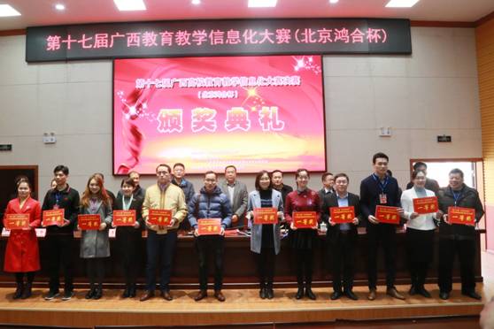 广西高校教育教学信息化大赛是区内最具影响力和规模最大的教育信息化赛事,旨在促进区内高校信息技术与教育教学的深度融合,建设优质教育教学资源,提升高校课堂教学的信息技术应用水平,是广西高校教师教育技术能力培养与提升的重要平台。本次大赛全区共有567件作品参赛,由区内知名专家、学者担任评委。为体现大赛的公平公正,本次比赛采取12位评委现场打分亮分方式,分别去掉1个最高分、1个最低分,余下10位评委的平均分(百分制)为作品最后得分。