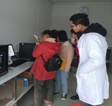 同学积极认真了解仪器的测试原理,同时在参观过程中,工口漫画
