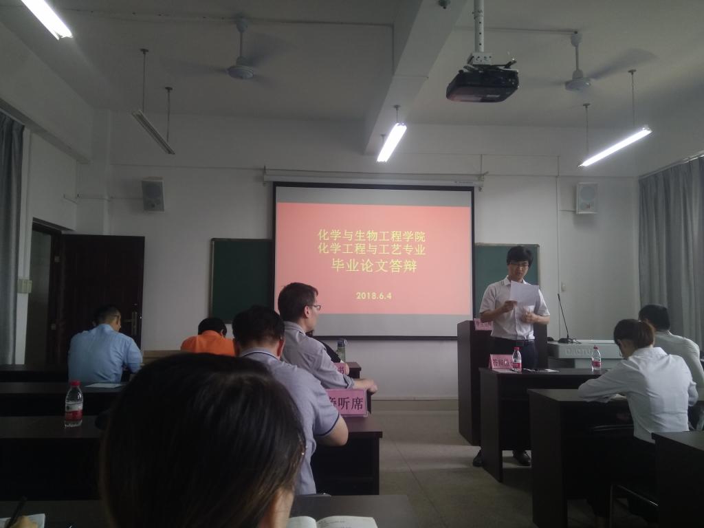 化学工程与工艺专业电化学方向2018届本科毕业生在雁山校区07607和07611教室举行了毕业设计(论文)答辩会。电化学教研室全体指导教师及外聘专家——桂林长海科技发展有限公司蔡先礼、钟雪参加了答辩会。