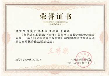 潘宏程、李建平、朱文远等教师自制的《便携式电位溶出分析仪》获大赛三等奖。