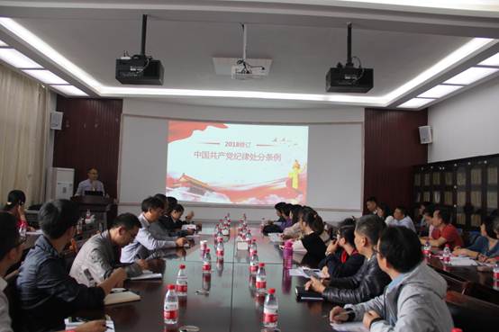 指导新修订的《中国共产党纪律处分条例》(以下简称《条例》)专题宣讲。学院党委书记梁军主持《条例》专题宣讲,全院教工党员及学生骨干党员参加了《条例》专题宣讲。