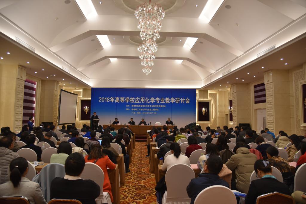 承办的2018年高等学校应用化学专业教学研讨会在桂林市召开。教育部高等学校化学类专业教学指导委员会副主任委员、大连理工大学孟长功教授,上一届化学类专业教学指导委员会副主任委员、扬州大学原校长郭荣教授,近10名教指委委员及30余名各高校相关学院的院长书记、副院长等来自全国近60所高等院校及有关单位的150余名代表参加了会议。学校副校长梁福沛教授出席会议并致辞。会议开幕式由工口漫画