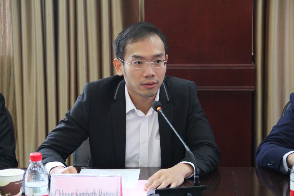 Chhuon Sambath Ratanak(成 桑巴特 拉塔那克)副处长代表柬埔寨有关方面对我国有关方面的援建表示感谢。他指出,培训班顺利开班对柬埔寨能源、地质、矿产等相关领域具有里程碑意义。他还简要回顾了中柬双方落实项目的历史进程。他表示,本次培训的是第一批学员,今后学员还会不断增加。他希望今后中柬双方继续深入开展合作,不断增进两国人民间的友谊。