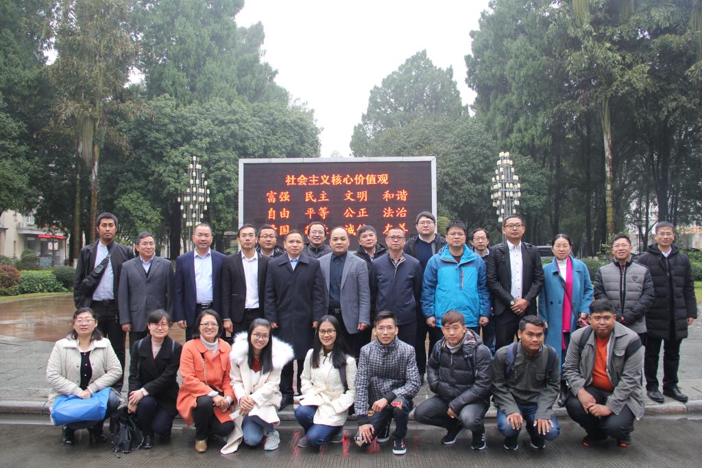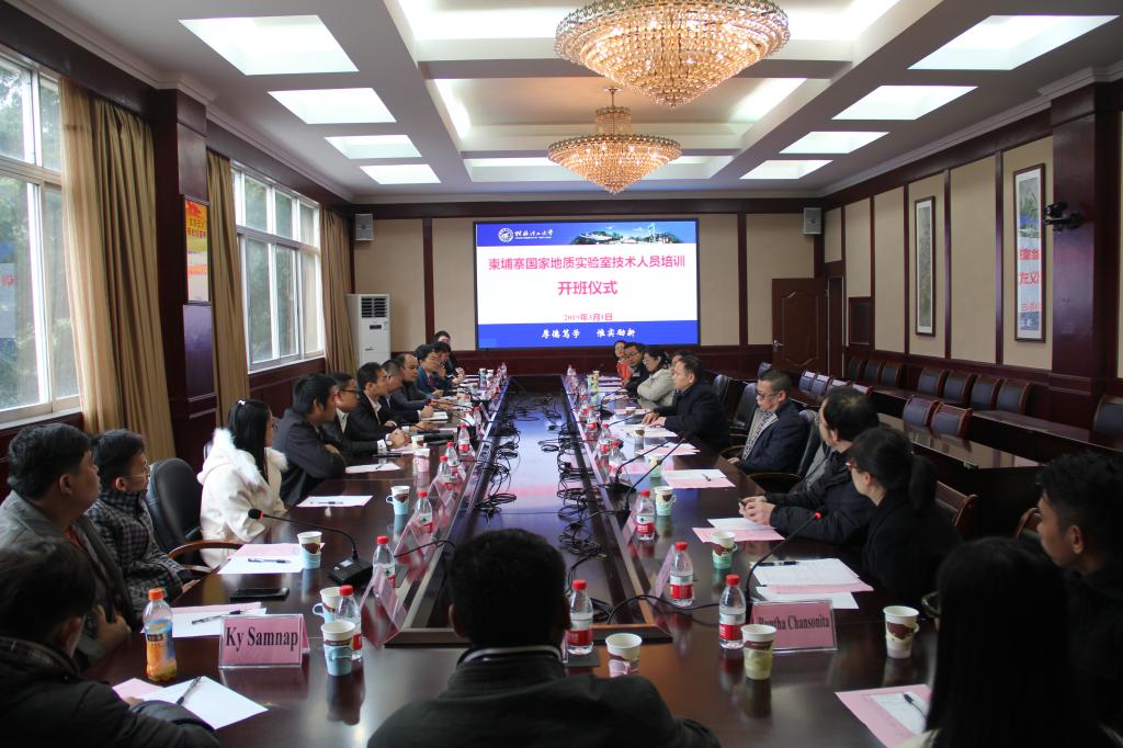 对外交流与合作工作,更好服务国家“一带一路”倡议,我校承担了柬埔寨国家地质实验中心技术人员的培训任务。3月1日上午,柬埔寨国家地质实验中心技术人员培训班开班仪式在我校屏风校区教八楼三楼会议室举行。学校党委书记李国忠会见了客人,就相关领域开展交流与合作等事宜进行了深入交流。学校副校长周国清出席仪式并致辞。柬埔寨矿产能源部矿产资源总局对外合作与东盟事务处副处长Chhuon Sambath Ratanak(成 桑巴特 拉塔那克)、广西自然资源厅科技与对外合作处副调研员罗汉军、广西地质矿产勘查开发局科技与对外合作处处长韦启锋、副处长潘贝红,广西地质矿产测试研究中心主任黄庆柒、总工程师何飞龙,本期培训班全体学员及我校部分专业教师参加了开班仪式。