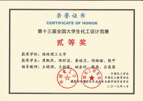 参赛队伍还获得全国叁等奖13项、华南赛区贰等奖5项、叁等奖3项。我校化工专业学生较好地理解了本次大赛的主题,工程设计能力得到了总体提升。获奖情况如下:
