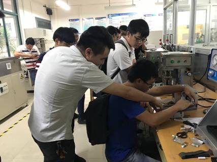 学生参与锂离子电池中试线操作培训现场