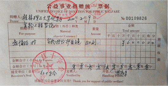 现有教学用品捐赠给疫情防控一线单位。2月7日,梁军书记和匡小军院长安排实验中心老师从25间实验室、应急柜、应急医药箱收集到33升75%乙醇和500副防护眼镜,价值合计数万元,用于捐赠给我校疫情防控工作小组和资源县红十字会。