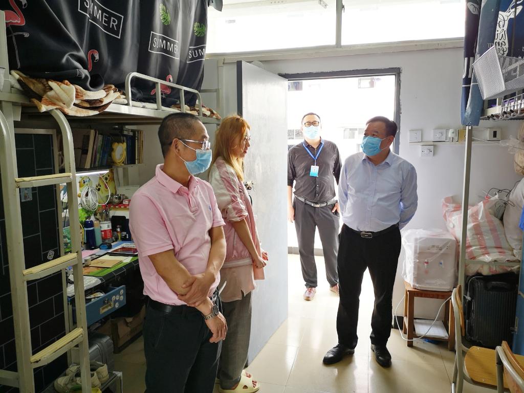 在宿舍走访过程中,梁福沛副校长一行详细询问了非毕业班学生返校后的学习、生活情况。梁副校长亲切地向同学们介绍防疫知识和防疫工作规定,嘱咐大家要按照学校、学院统一部署开展校园学习生活,希望同学们在特殊时期做好防疫措施并及时进行每日晨午检体温测量,注意自身的身体健康、心理疏导及宿舍水电使用安全,增强自我管理意识,保持宿舍通风,营造一个良好的寝室氛围。走访宿舍后,梁副校长一行还深入学生课堂,经巡查发现,同学们大都精神饱满,认真记录笔记,课堂秩序井然,展现了新学期的新气象。