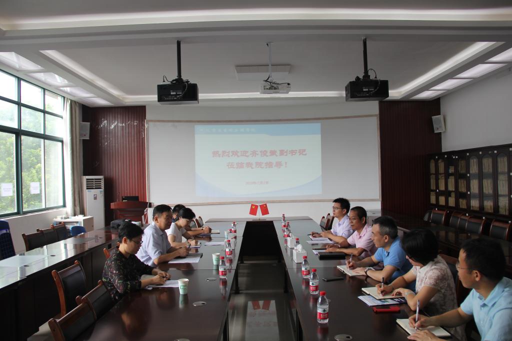 工作给予了充分肯定。齐副书记还对学院工作作了指示:一是要继续加强班子建设,做好年轻干部的培养工作,保持班子的活力,党委书记要掌好“舵”,确保学院发展的总体方向;二是要高度重视意识形态工作,对敌对势力的渗透、策反活动要时刻提高警惕,要管好队伍、守好阵地,严防问题出在“不经意之间”,平时要加强学习,多接触、多了解有关方面问题,不断增强意识形态的“免疫力”;三是要继续做好扶贫工作,充分发挥学院专业技术优势,继续做好扶贫点的光伏太阳能基地技术帮扶,要大力做好消费扶贫工作,发动师生员工踊跃参与,为决战决胜脱贫攻坚贡献力量。
