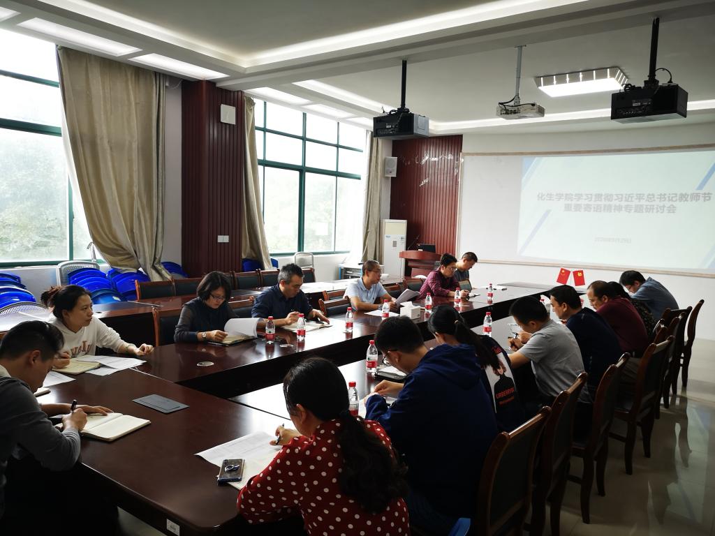 在雁山校区12217多功能室召开学习贯彻习近平总书记教师节重要寄语精神专题研讨会。学院全体党政领导班子成员、部分骨干教师代表参加会议。本次会议由学院党委书记梁军主持。