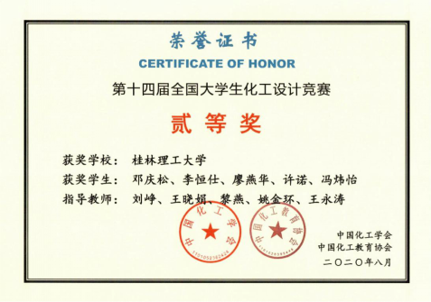 参赛队伍还获得全国叁等奖13项、华南赛区壹等奖2项、贰等奖4项、叁等奖4项。我校化工专业学生较好地理解了本次大赛的主题,工程设计能力得到了总体提升。获奖情况如下: