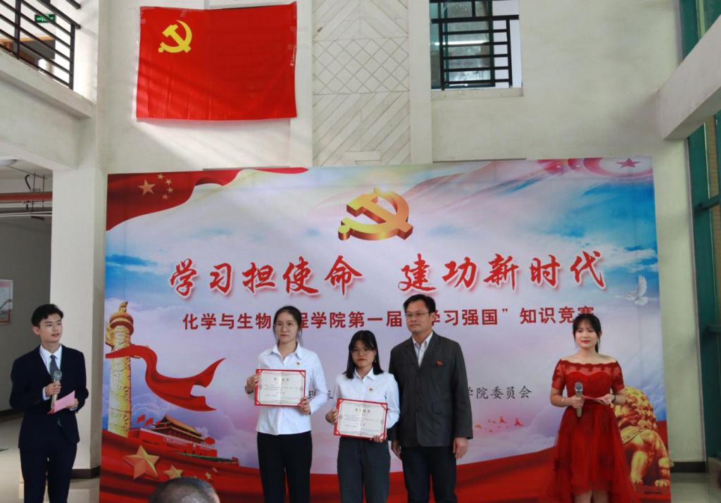 此次活动在主持人的带领下有序进行,在“去伪存真”环节,各党支部选手平分秋色,精神饱满,认真作答;随着“学无止境”环节题目难度的加深,各党支部代表队间的竞争显得愈发激烈;“共渡难关”环节将比赛推向了高潮,比赛进入白热化状态,各队选手齐心协力、快速思考、比记忆、拼知识,不错失任何一个得分的机会。经过最后一个环节“巅峰对决”,本科生第二党支部最终脱颖而出摘得桂冠,本科生第三党支部和本科生第四党支部并列获得亚军,应用化学教工党支部、研究生第二党支部和本科生第一支部获得季军。本次“学习强国”知识竞赛以此落下帷幕。
