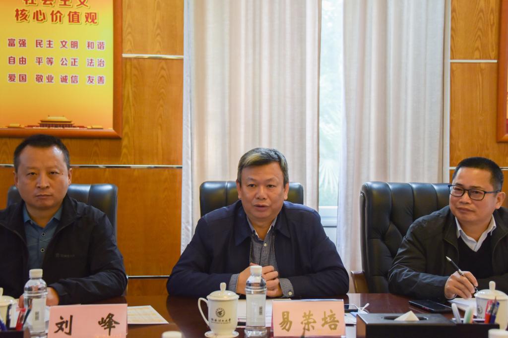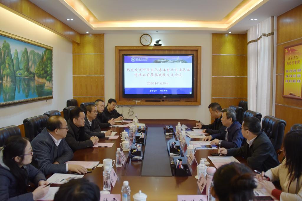 的历史、师资力量、学科建设、以及教学与科研平台、人才培养等情况进行了详细介绍。易荣培一行从公司规模、发展前景等方面介绍了中国石化湛江东兴石油化工有限公司。随后双方人员就毕业生招聘、实习基地建设、人才联合培养、校企产学研深度融合等合作事宜进行了深入交流。