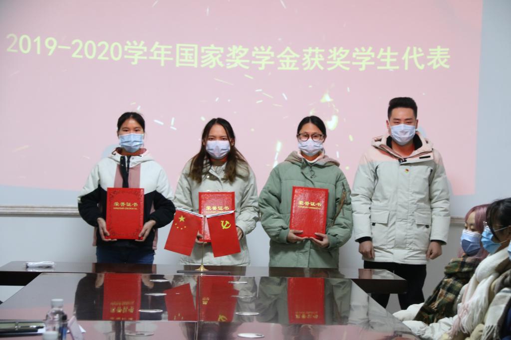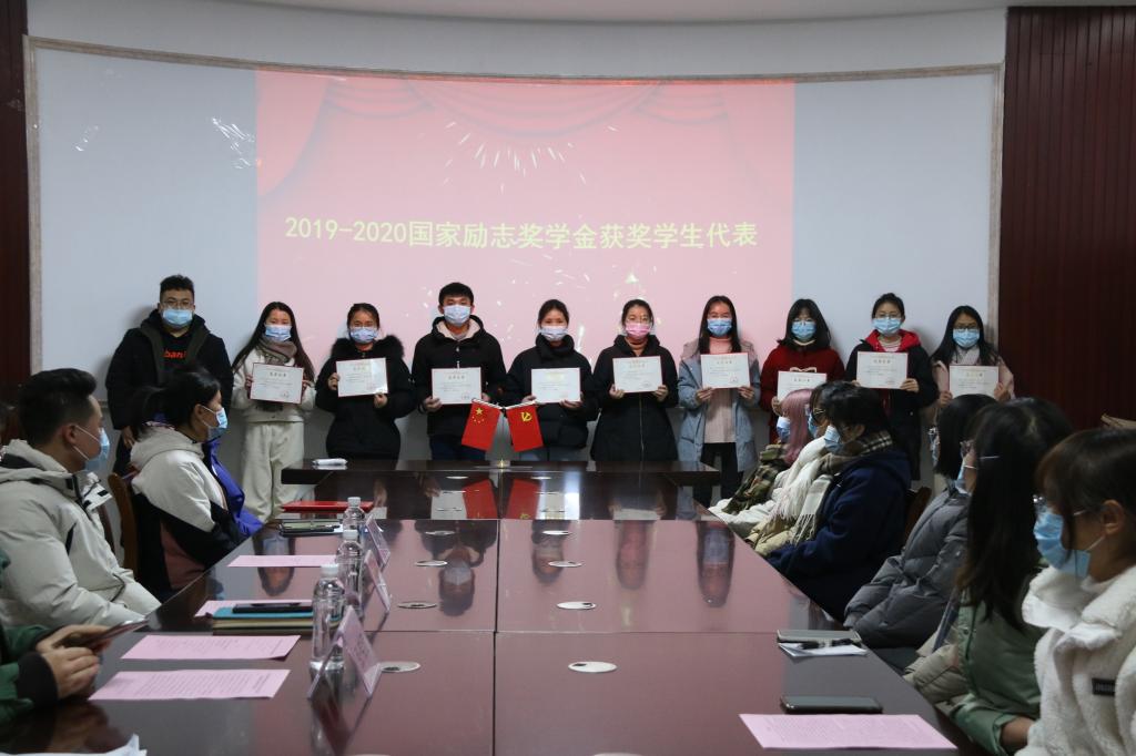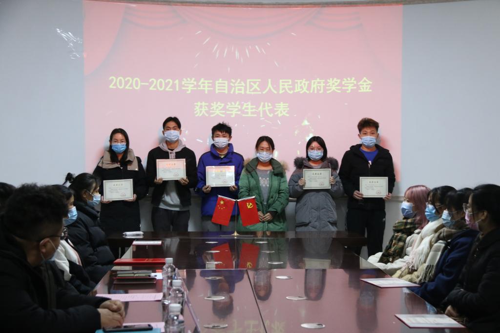 随后,张伟颀老师宣读了表彰决定,与会老师向2019-2020学年度国家奖学金、国家励志奖学金、2020-2021学年度自治区人民政府奖学金、2019-2020学年度工口漫画