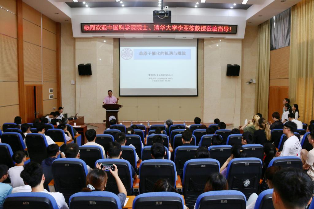 邀请,在雁山校区萃华楼学术报告厅作了题为“单原子催化的机遇与挑战”的学术报告。我校副校长梁福沛教授主持报告会。学院相关专业师生130多人聆听了本次报告。