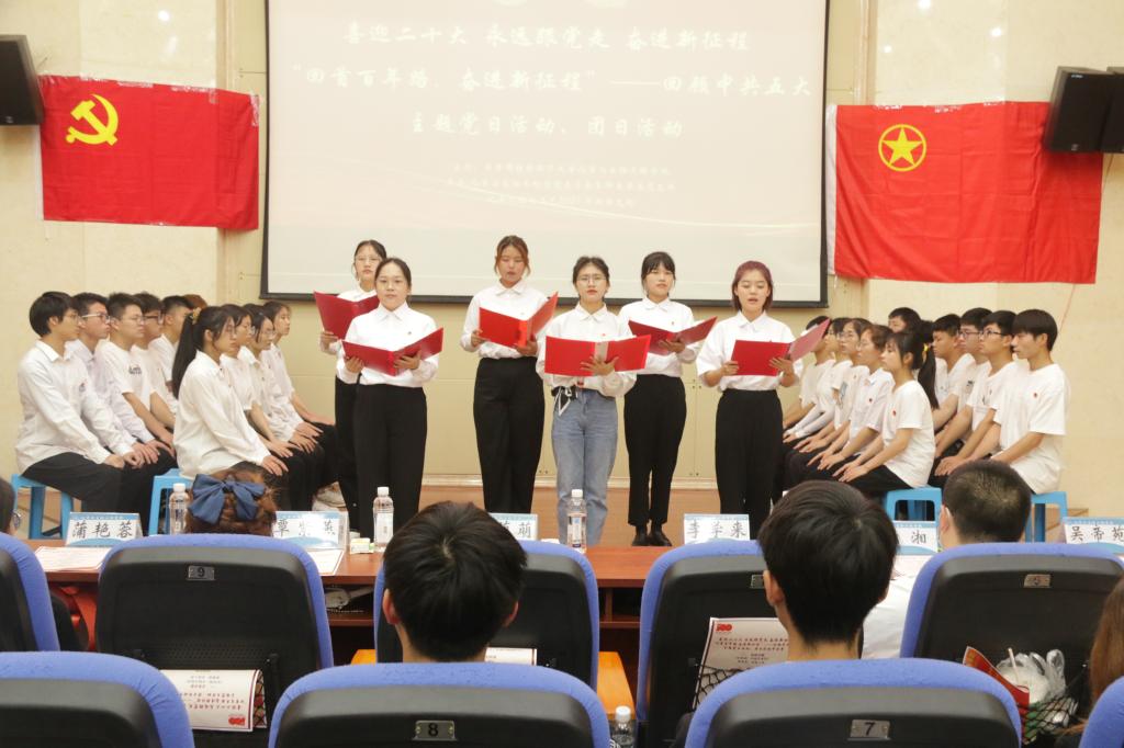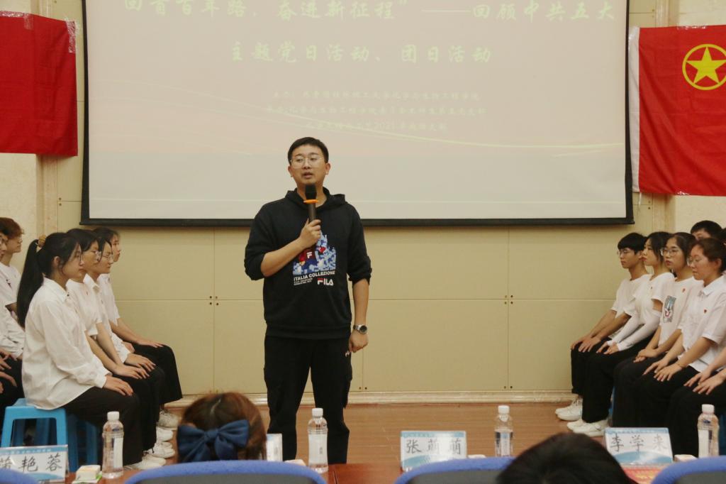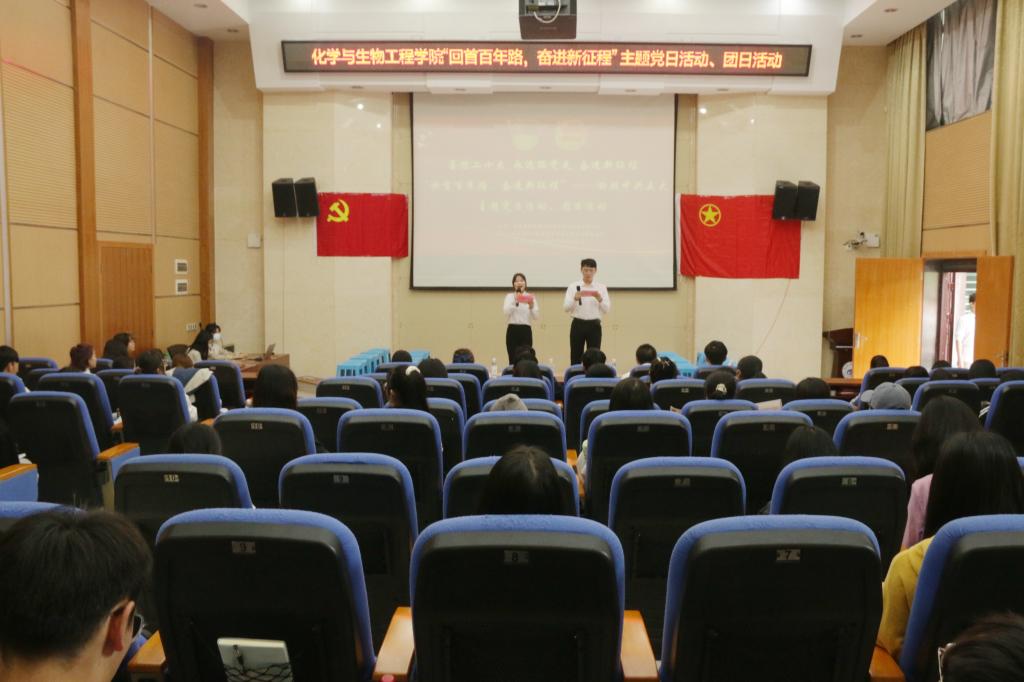 活动伊始,全体人员共唱共青团团歌,团日活动由此拉开序幕。首先,全体人员观看了令人激昂振奋的视频《学党史 忆初心——中共五大:狂澜江城路何方》。从那时起,信仰就是我们队伍高扬的战旗;从那时起,信仰就如血脉融入党的肌体。随后化生学院艺术团朗诵队为我们带来红色诗朗诵《信念永恒》。让全场人员再次接受了红色精神洗礼,进一步坚定了理想信念。朗诵结束后,到了党史知识竞答环节,通过竞答让同学们对我们的党有了更深的了解,回顾建党百年伟业,感受革命情怀。接下来是艺术团带来演唱歌曲《孤勇者》,激情澎湃的歌曲启示着我们迎难而上,敢于斗争,砥砺前行。最后,由张萌萌老师上台对本次活动进行总结与点评。