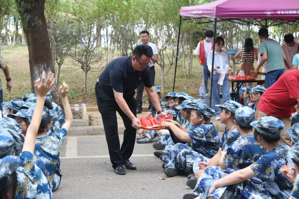 李南副书记为2022级军训学生分发西瓜