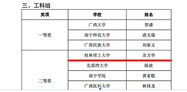 及方华副教授获工科组二等奖。