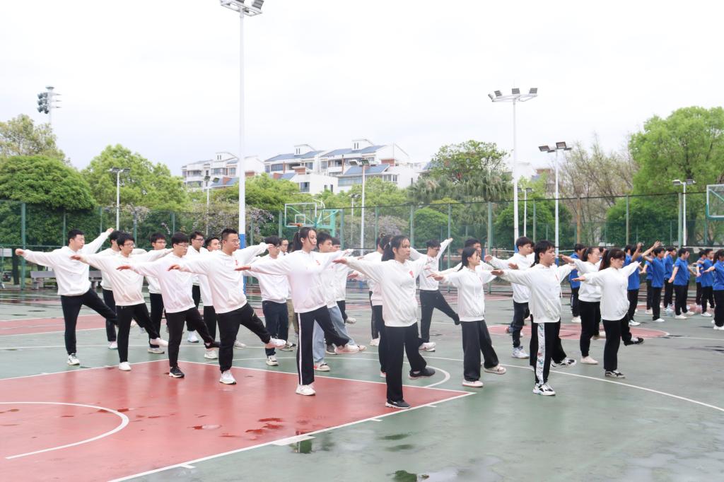 于4月2日下午在一号篮球场举行第九套广播体操比赛。学院党委副书记李少华、各年级辅导员及2022级班主任代表和全体同学参与本次活动。