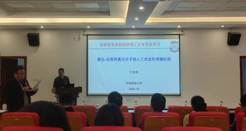 举办的广西电磁化学功能物质重点实验室(以下简称重点实验室)2023年度学术年会在屏风校区教一楼副楼三楼学术报告厅顺利召开。本次会议邀请到湖南师范大学杨荣华教授、华南师范大学兰亚乾教授、华南理工大学余浩教授出席并作学术报告。梁福沛教授出席会议并致辞,学院院长、重点实验室主任匡小军教授出席并主持会议。学院副院长何方教授以及学院部分教师参加会议。