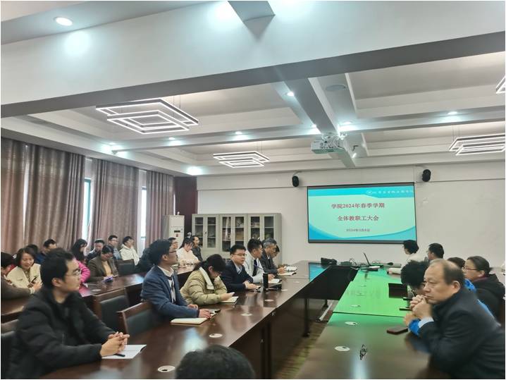 在雁山校区教12楼12407会议室召开2024年春季学期全院教职工大会,学院全体教职工参加。会议由学院院长匡小军主持。