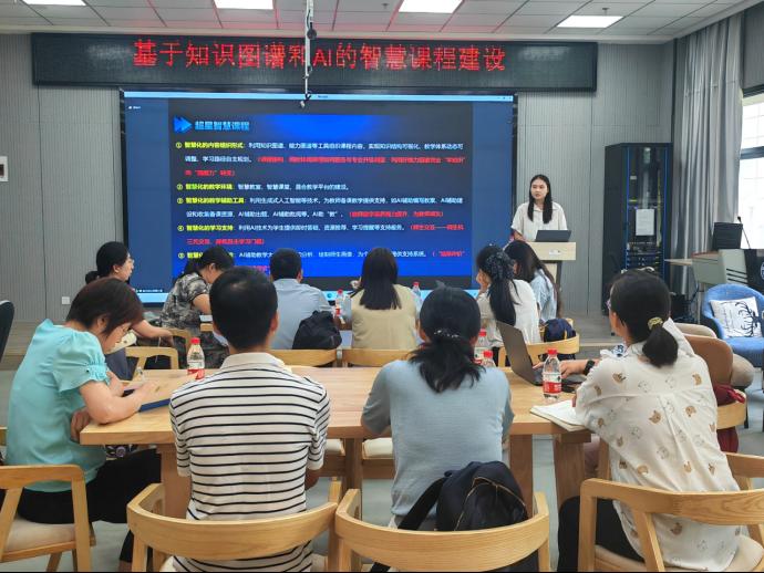 黄丽霏老师作了题为《基于知识图谱和AI的智慧课程建设》的报告,主要从智慧课程建设相关政策导向、智慧课程建设内容及流程、超星智慧课程全流程服务、成果申报推动学院新发展几方面做了详细介绍,并以《普通化学》课程为例进行示范演示。现场老师认真思考,积极交流,纷纷表示受益颇多。