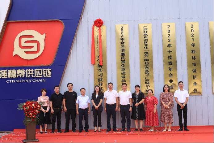 党委书记彭代江、副院长李霞等一行四人到桂林市捶糖帮供应链管理有限公司开展合作洽谈并举行产学研实习就业基地签约及挂牌仪式。桂林市捶糖帮供应链管理有限公司总经理张燕玲、桂林市科学技术情报研究所所长张树斌、情报研究所工业发展研究部副主任韦婉琰、阳朔县白沙镇党委书记黎中顺等领导一起参加签约及挂牌仪式。