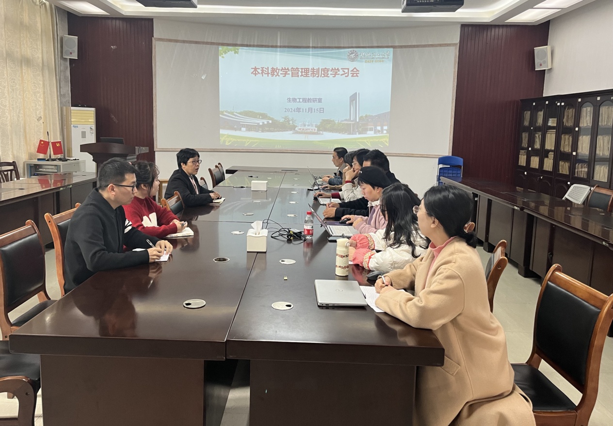 为了持续优化课堂教学成效并加速构建优质的本科教育教学体系,生物工程教研室于11月15日在雁山校区1212217会议室组织教师集体学习本科教学管理制度。