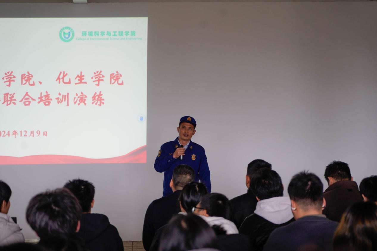 联合环境学院在雁山教十二楼开展了消防知识培训及避险演练活动。学院党委书记彭代江、环境学院党委书记代武社、环境学院副院长朱宗强以及学校保卫处、两学院师生代表合计260余人参加了此次培训。
